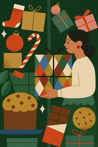 A SELECTION OF SWEETS, PANETTONI & CHOCOLATE