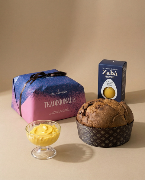 Experience the finest Italian holiday tradition with our Fratelli Sicilia Traditional Panettone (500g) paired with Zabà Zabaione Cream by Alberto Marchetti — a luxurious combination of artisan flavors and festive comfort.