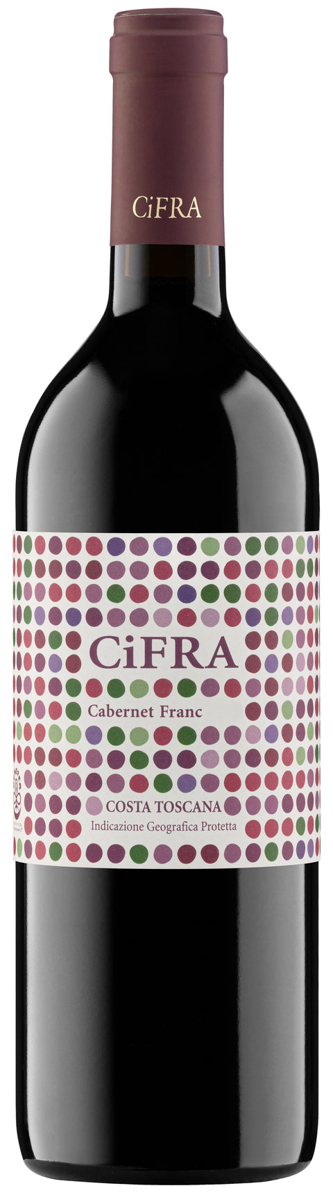 100% Cabernet Franc from Riparbella. Deep ruby, ripe cherry, cassis, lavender, and musk. Velvety tannins, fresh and powerful. Hand-harvested, biodynamic, unfiltered.