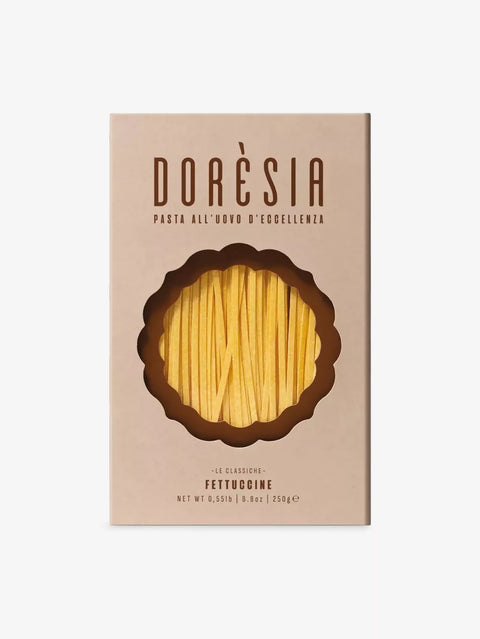 Traditional Italian egg fettuccine made with durum wheat semolina. Rich texture, golden color; pairs perfectly with creamy sauces, mushrooms, truffle, or seafood.